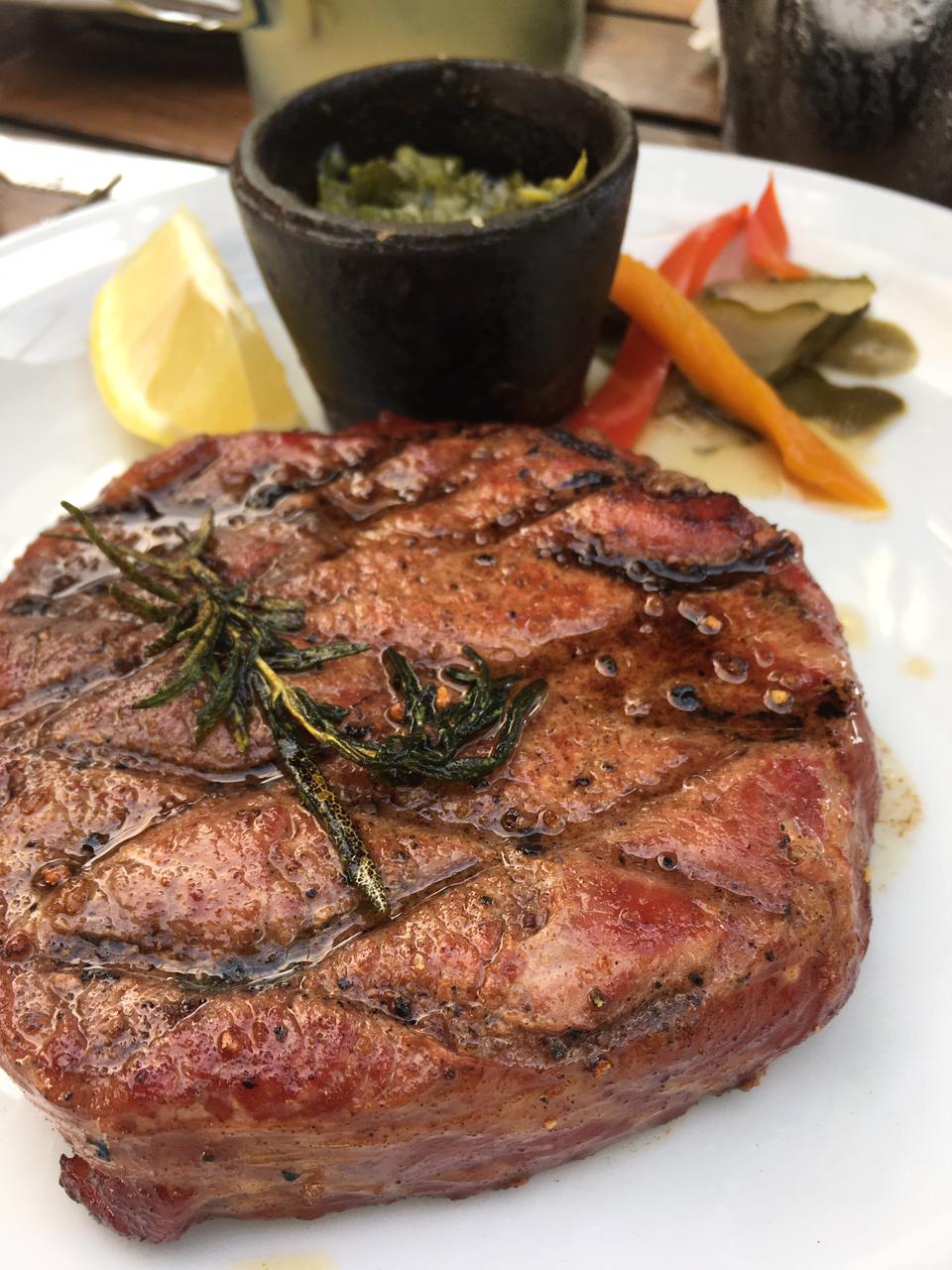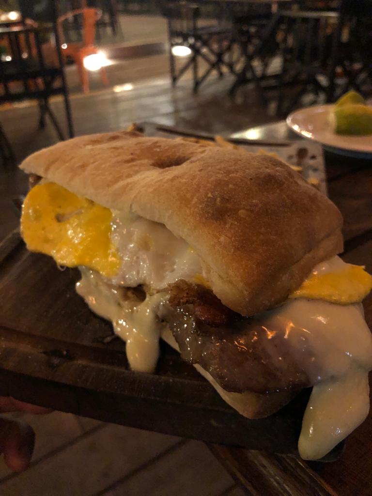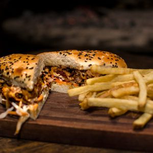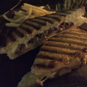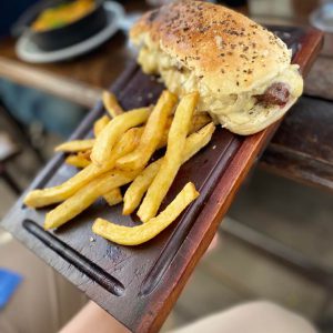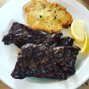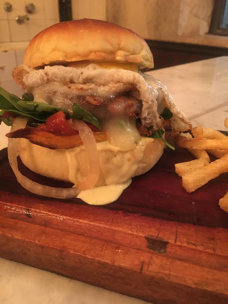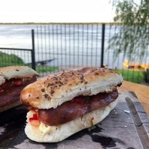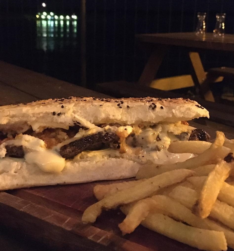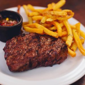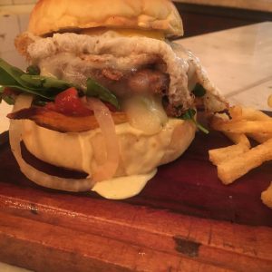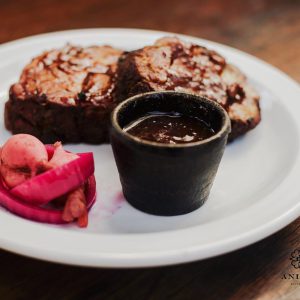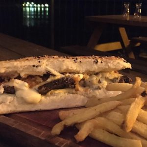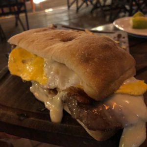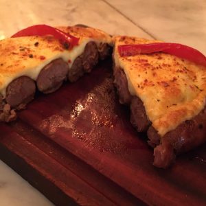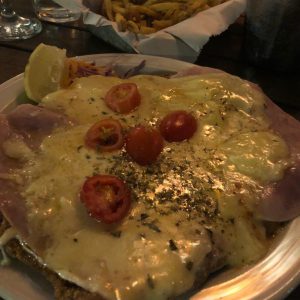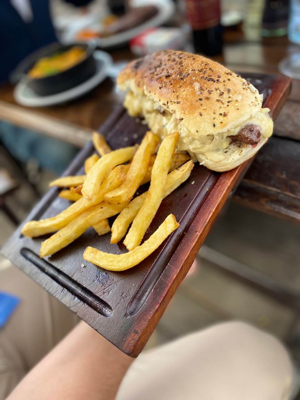 Entraña, mayonesa, queso muzzarella, salsa criolla