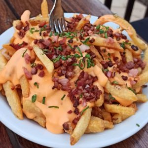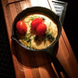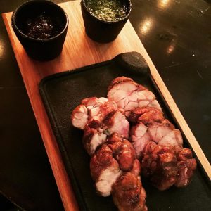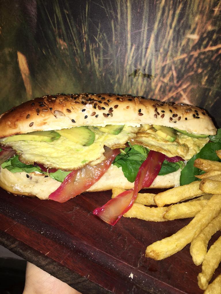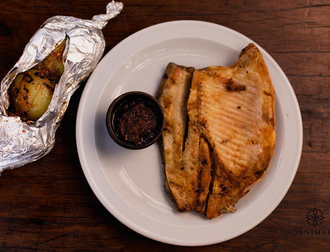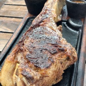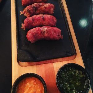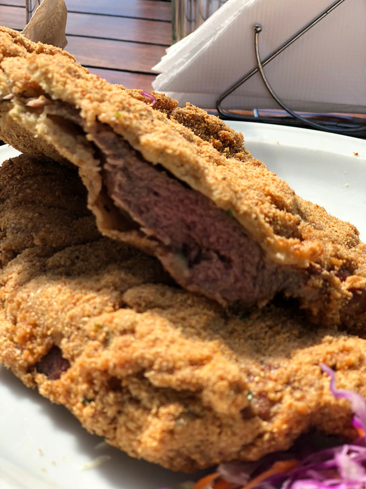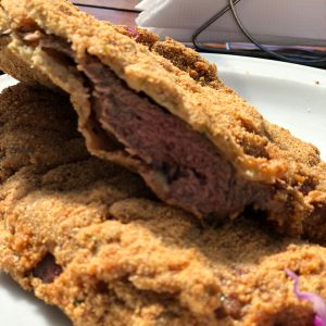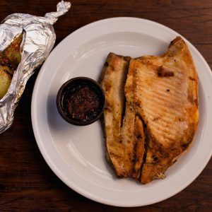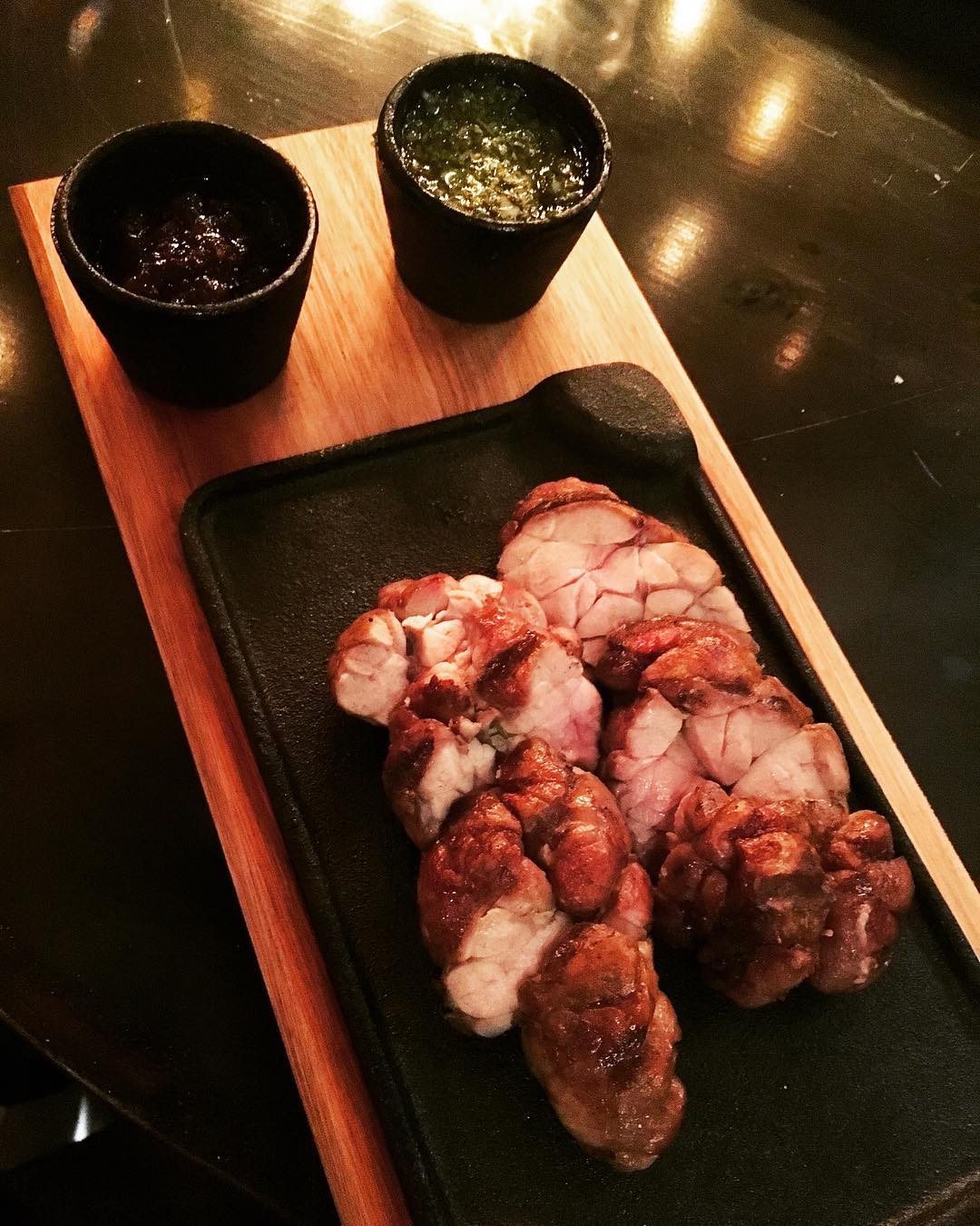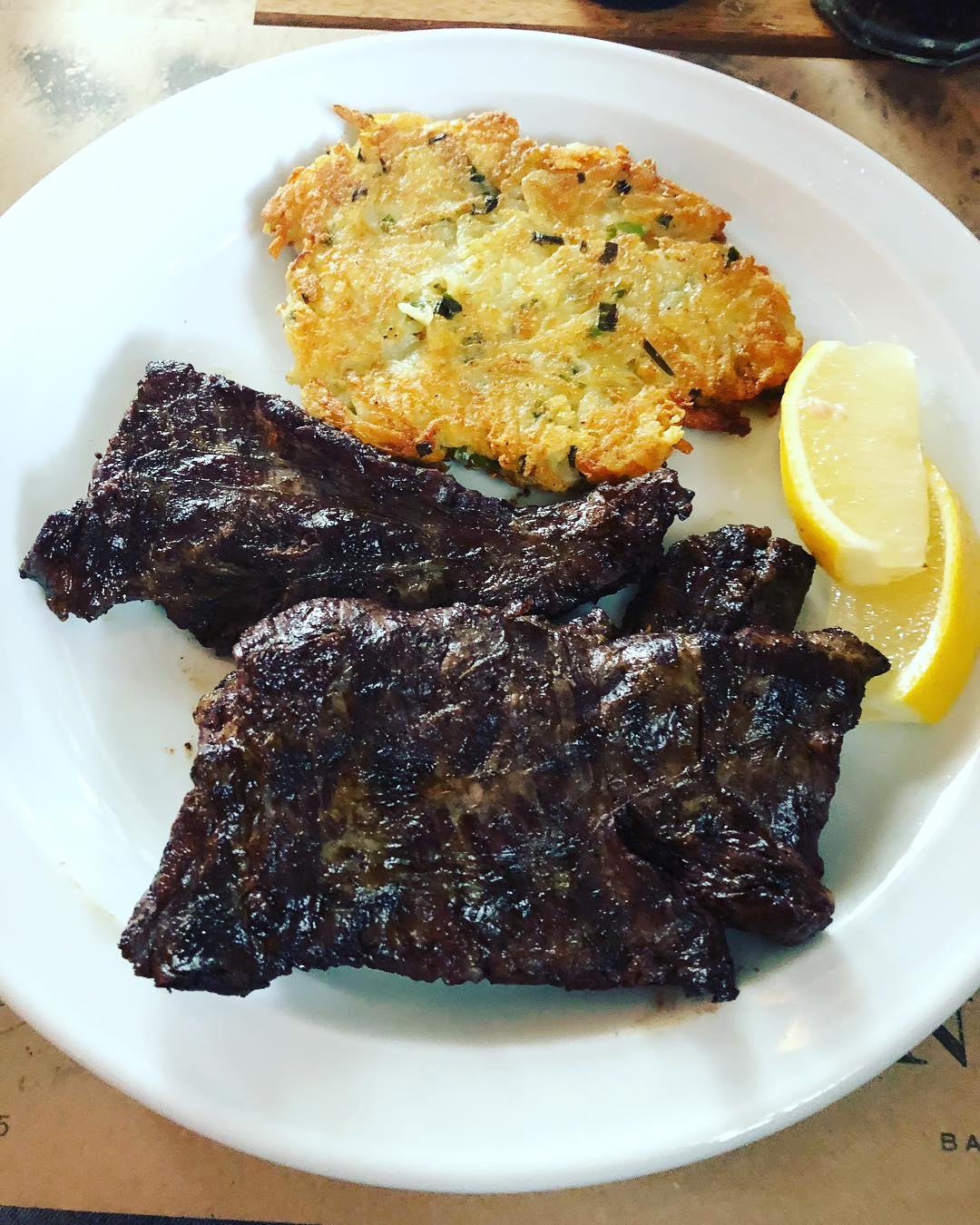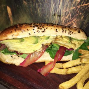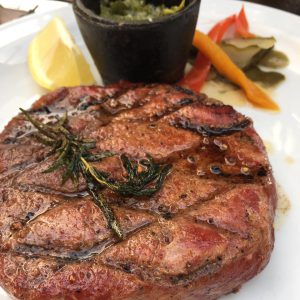 Entraña, mayonesa, queso muzzarella, salsa criolla