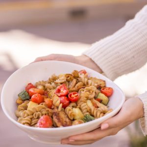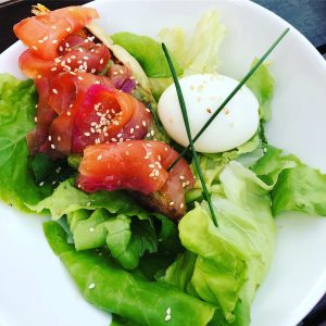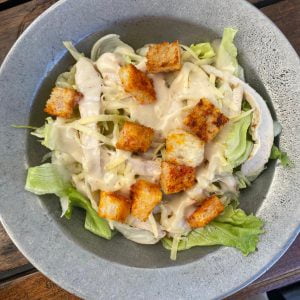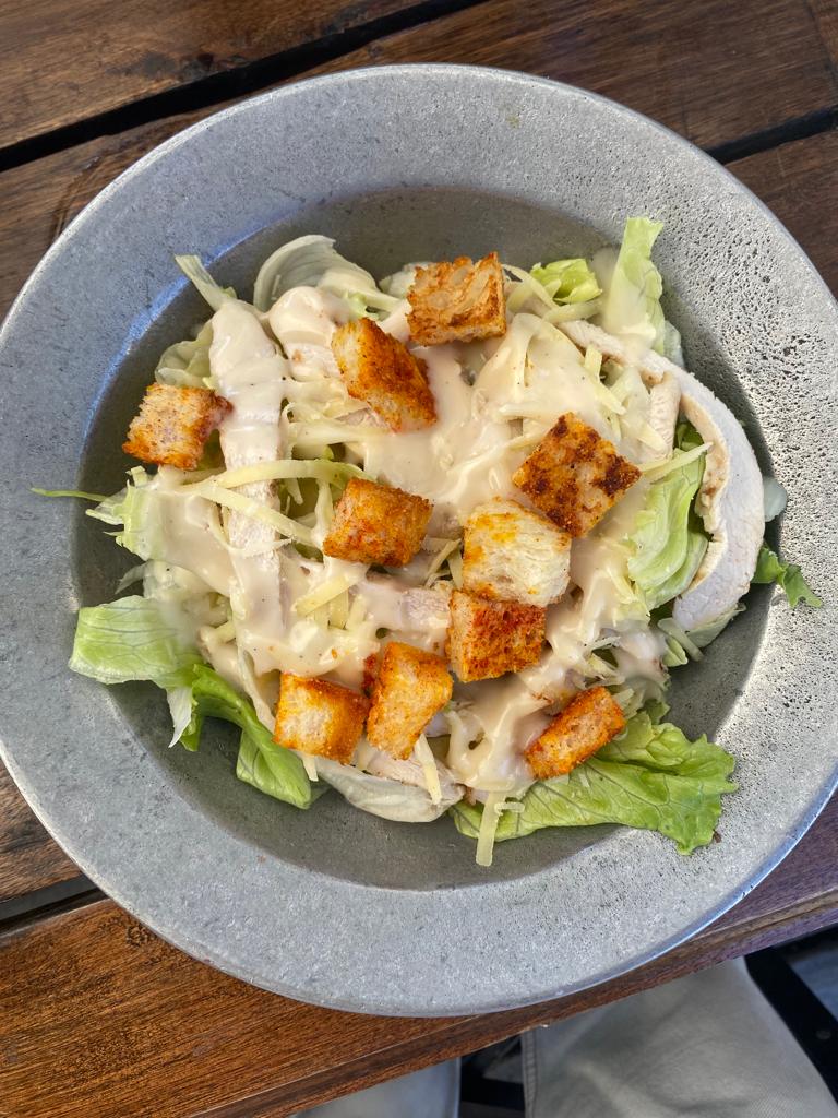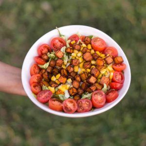 Hojas verdes, parmesano, cherrys, sal marina y semillas
