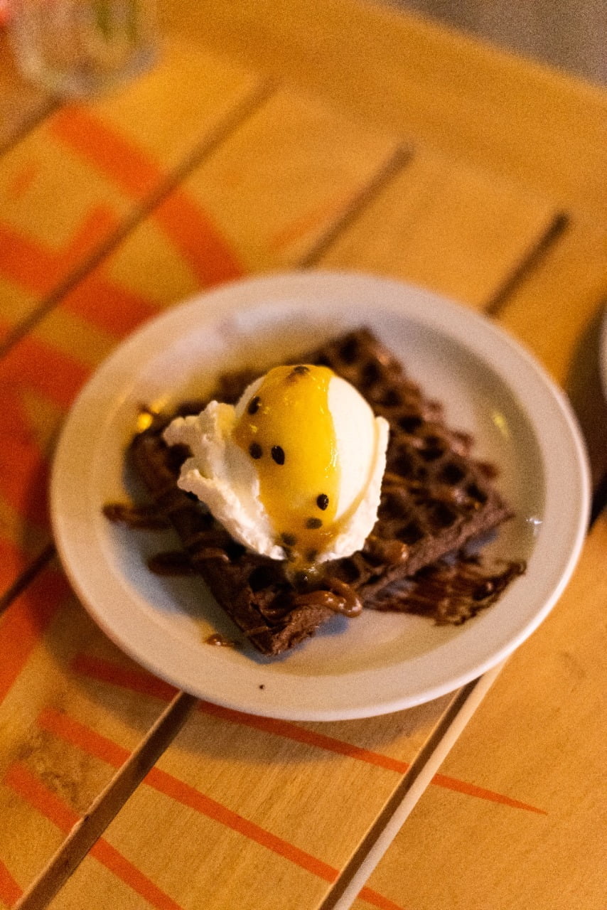 Gin Heredero, jarabe de Campari, cordial cítrico NPL, pulpa de mango, dash de lima, agua tónica, bitter de flores jamaiquinas